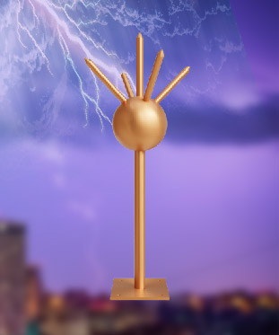 Ashlok Zeus lightning protection Rod offering one primary air terminal with four secondary terminals, thus allowing the capture of lightning from all directions as well as side flashes. More reliable protection